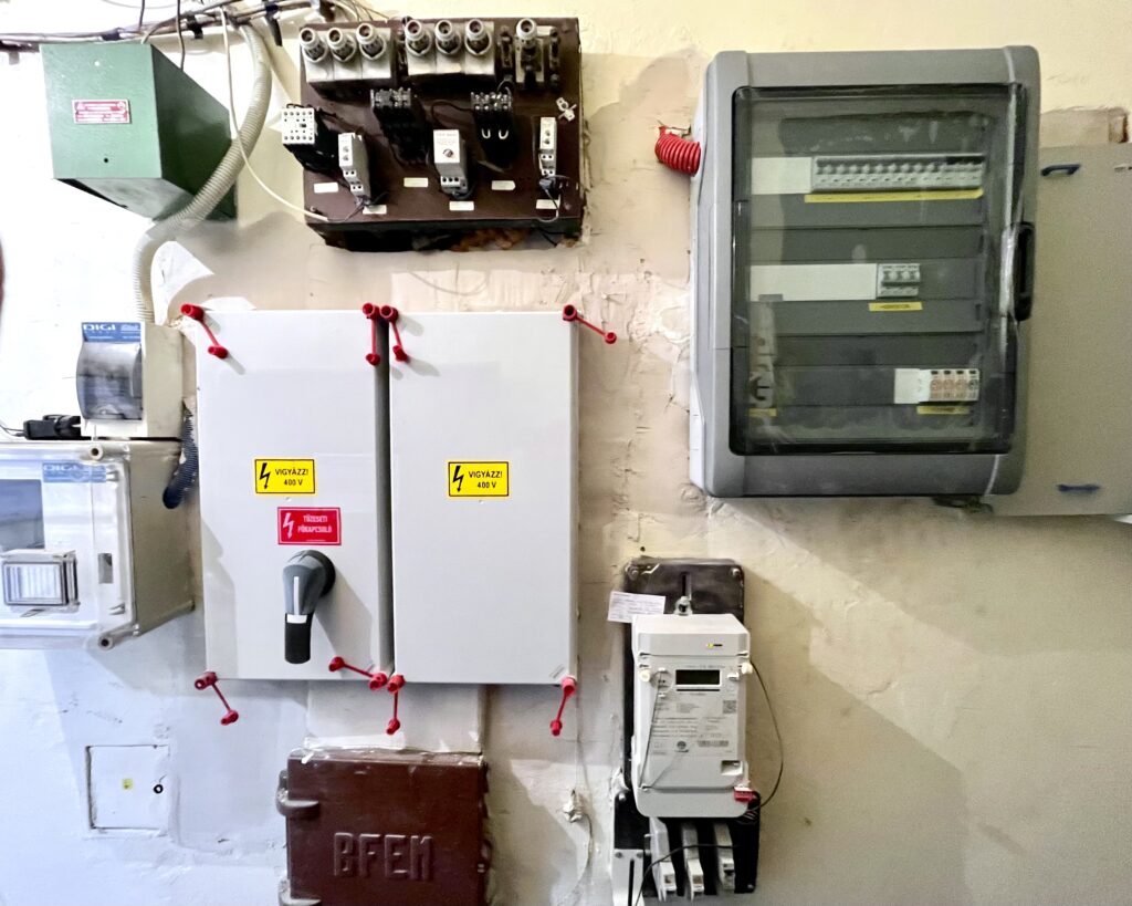 Egy budapesti társasház képviselői a társasházi energiaelosztási és a lépcsőházi hálózaton tapasztalható túlterhelési hiba miatt kerestek meg minket. Az elöregedő kötések és a nem megfelelően kiválasztott biztosító berendezések megléte tűzveszélyessé tette a társasház villamos hálózatát. A megégett kötési pontok azonnali beavatkozást tettek szükségessé.